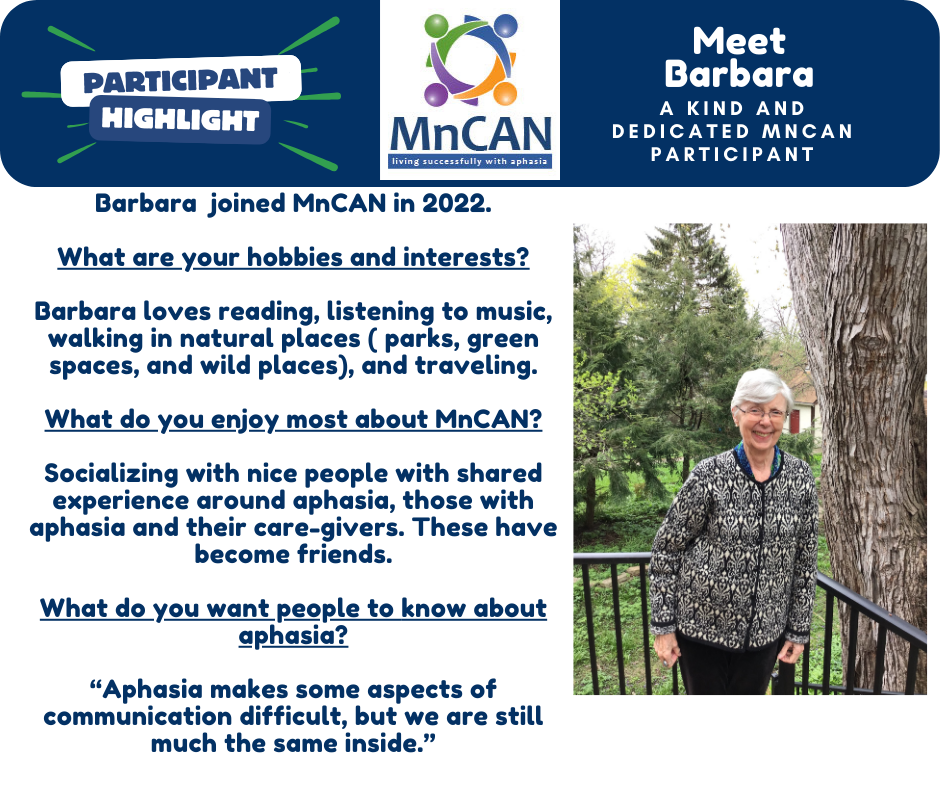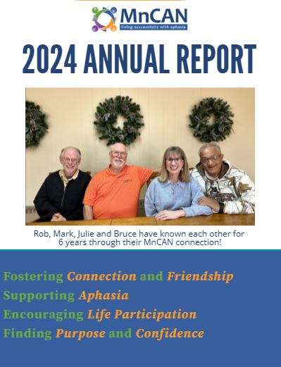 1. Minnesota Speech and Hearing Association Annual Conference. Our executive directors hosted a booth and provided a lecture titled "All About Aphasia" to the local speech-language pathology community during this hybrid event.